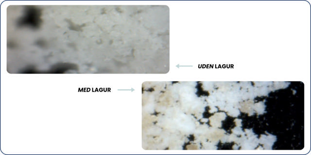 Teknologisk Institut har testet LAGURs patenterede teknologi. Resultatet viste markant færre kalkaflejringer, og den kalk der sad tilbage, var lettere at fjerne. Vil du se den fulde rapport, kan du kontakte vores kundeservice.